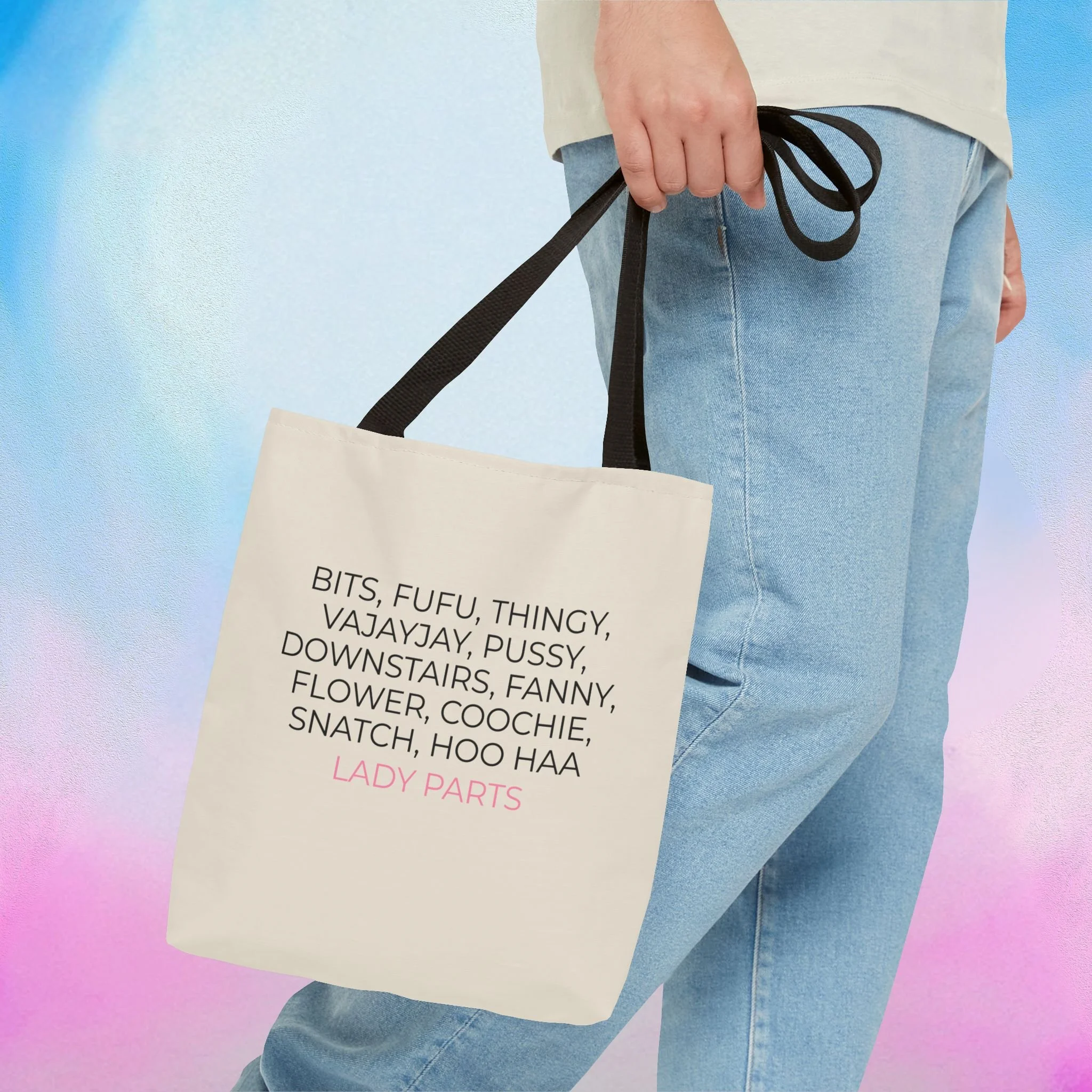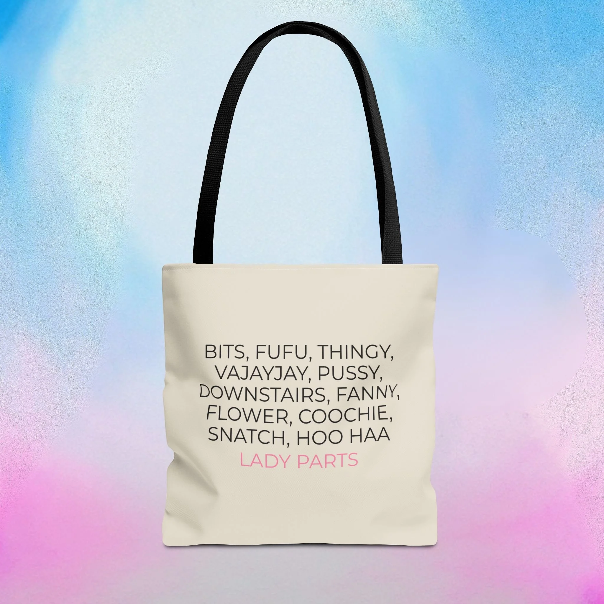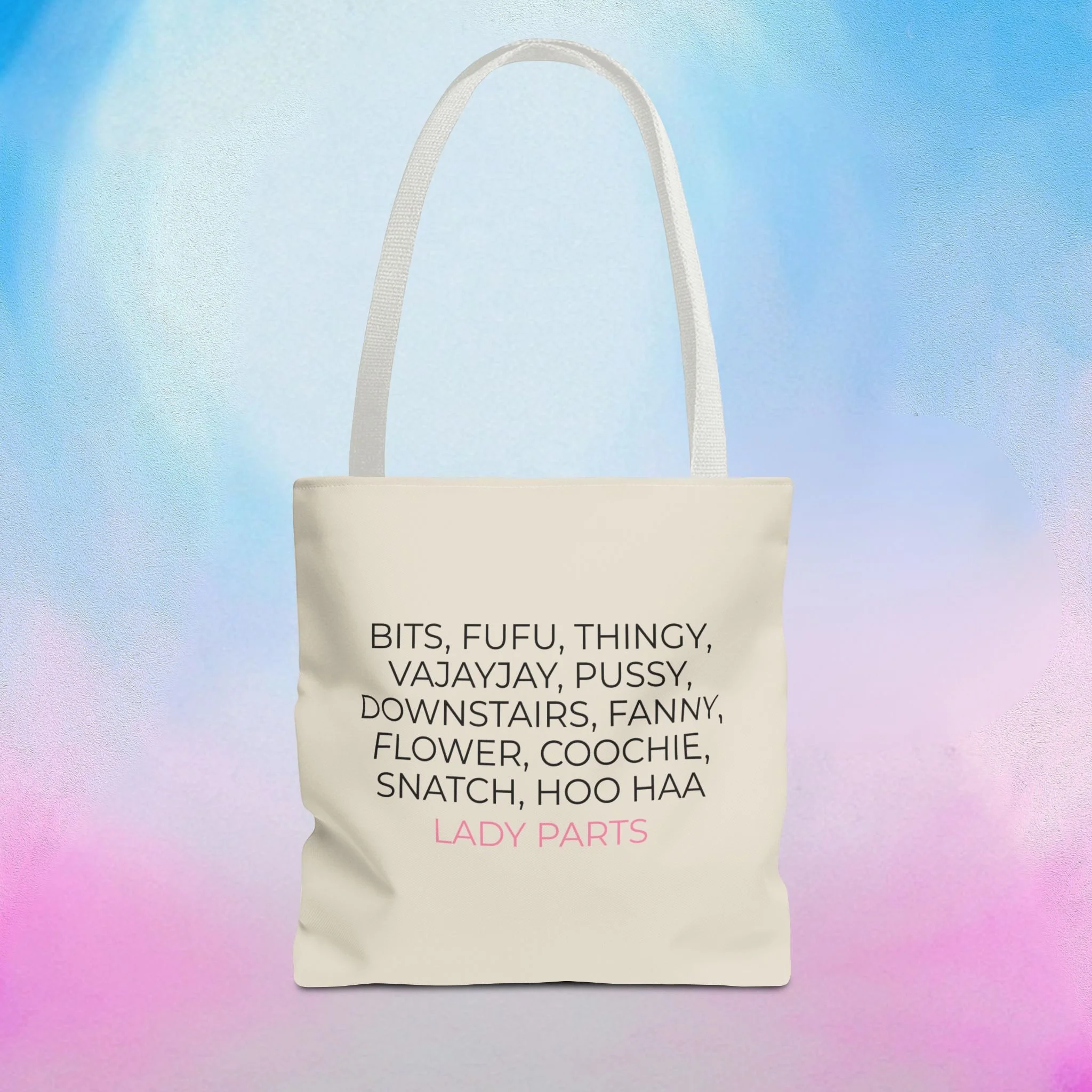 Official Lady Parts Film tote bag for women's health care and empowerment, featuring a minimalist design. Perfect for Lady Parts fans and women in film. Ideal for everyday use.