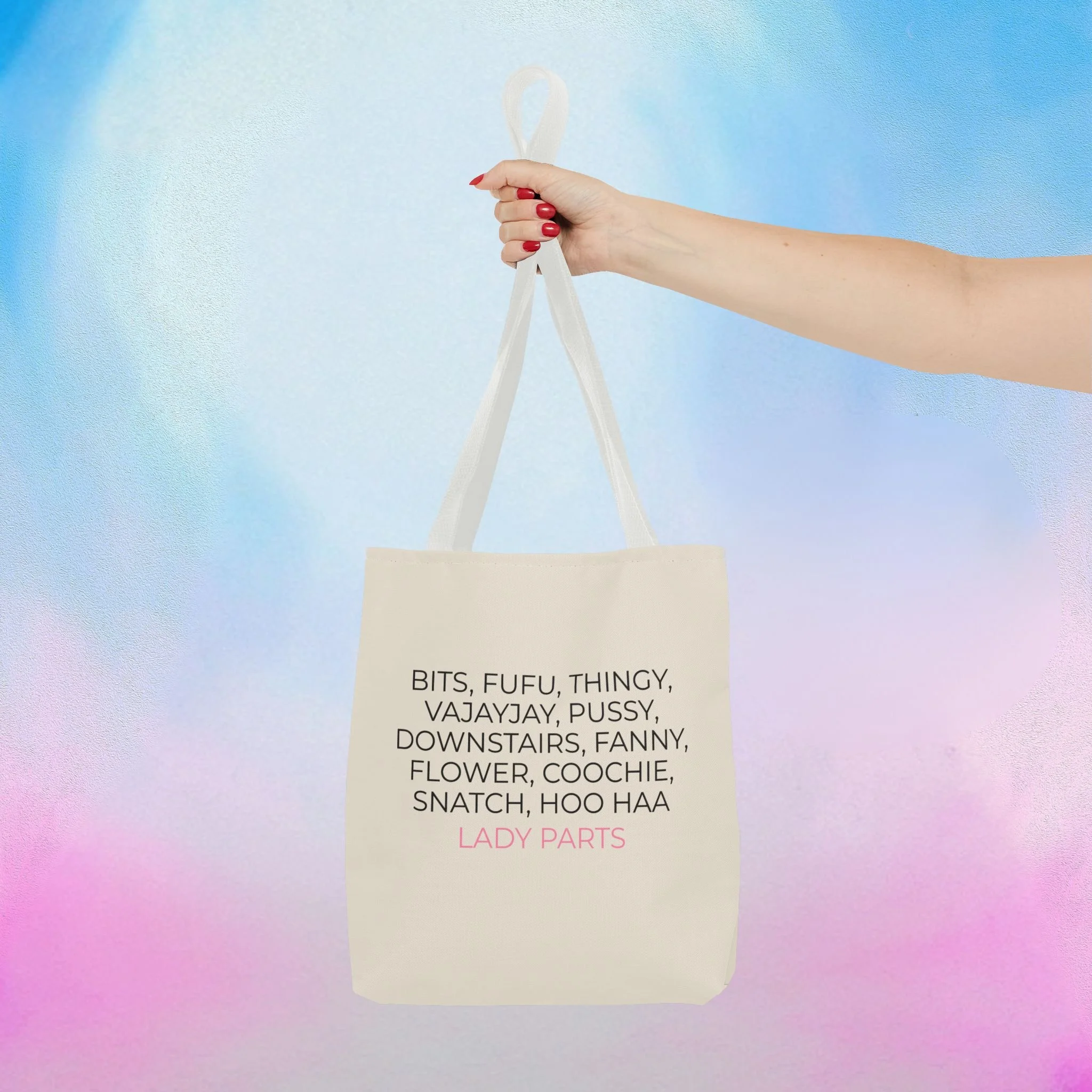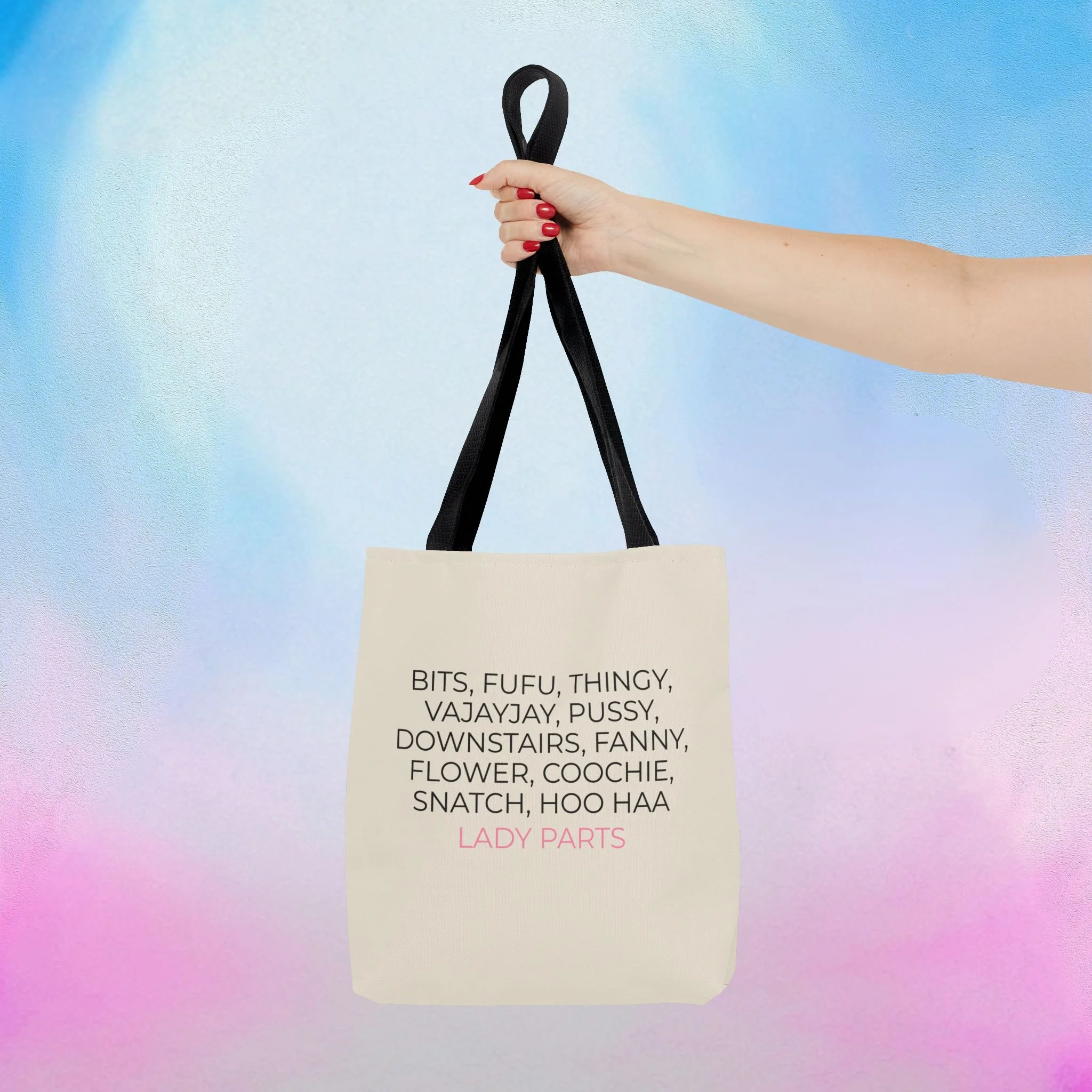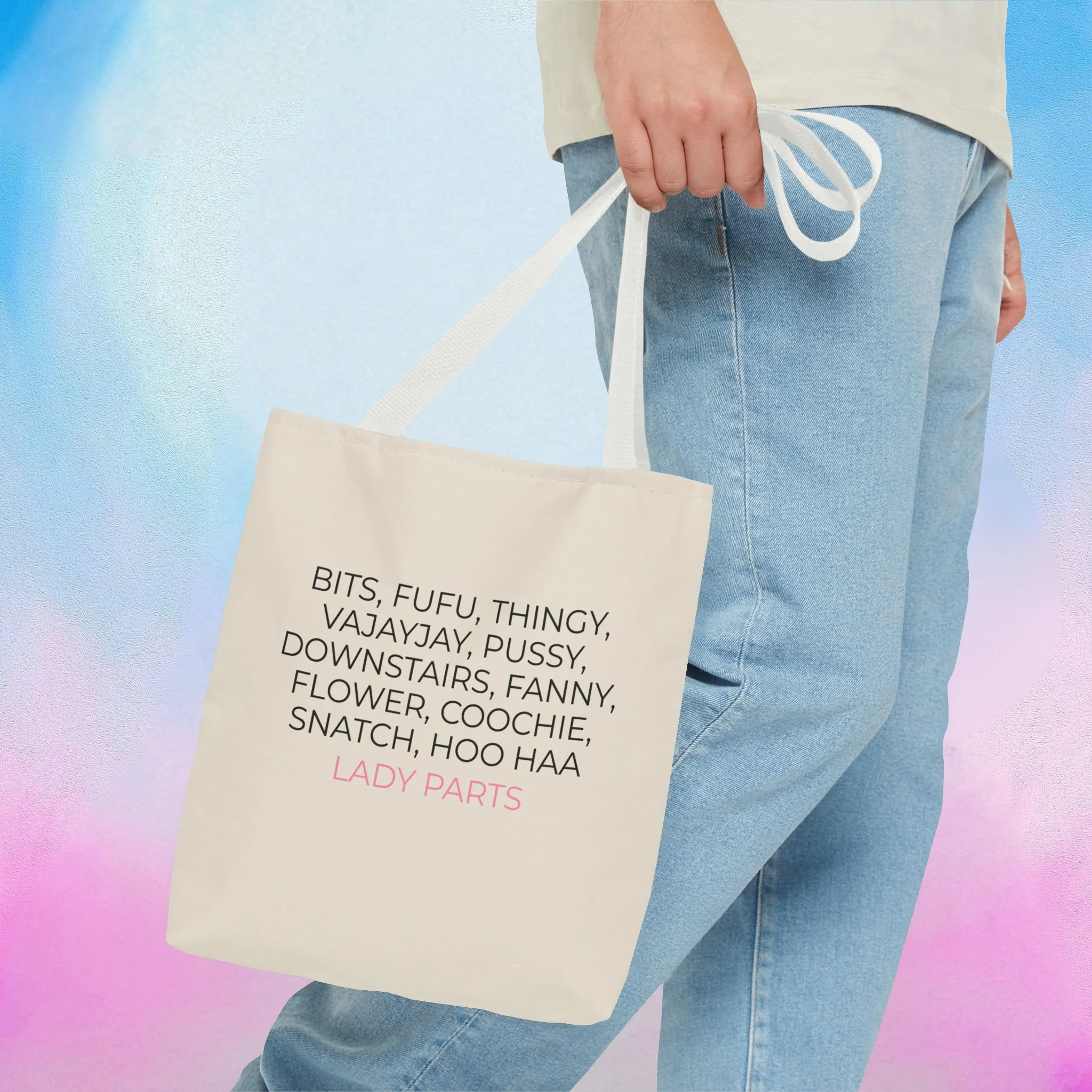 Official Lady Parts Film tote bag for women's health care and empowerment, featuring a minimalist design. Perfect for Lady Parts fans and women in film. Ideal for everyday use.