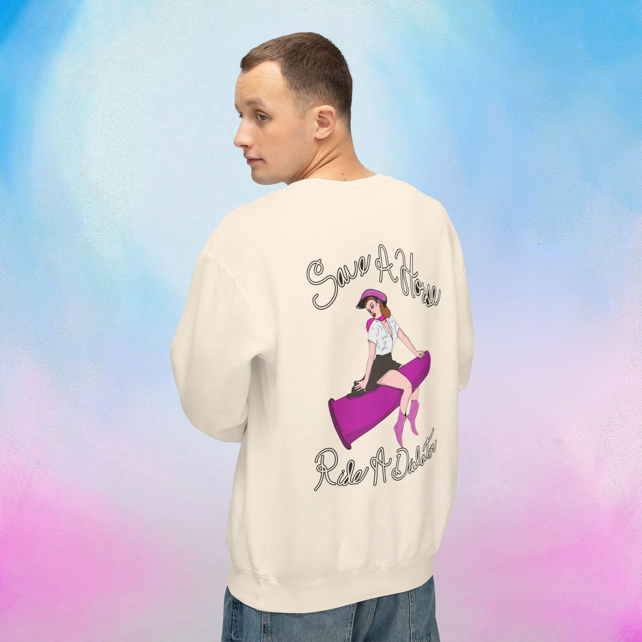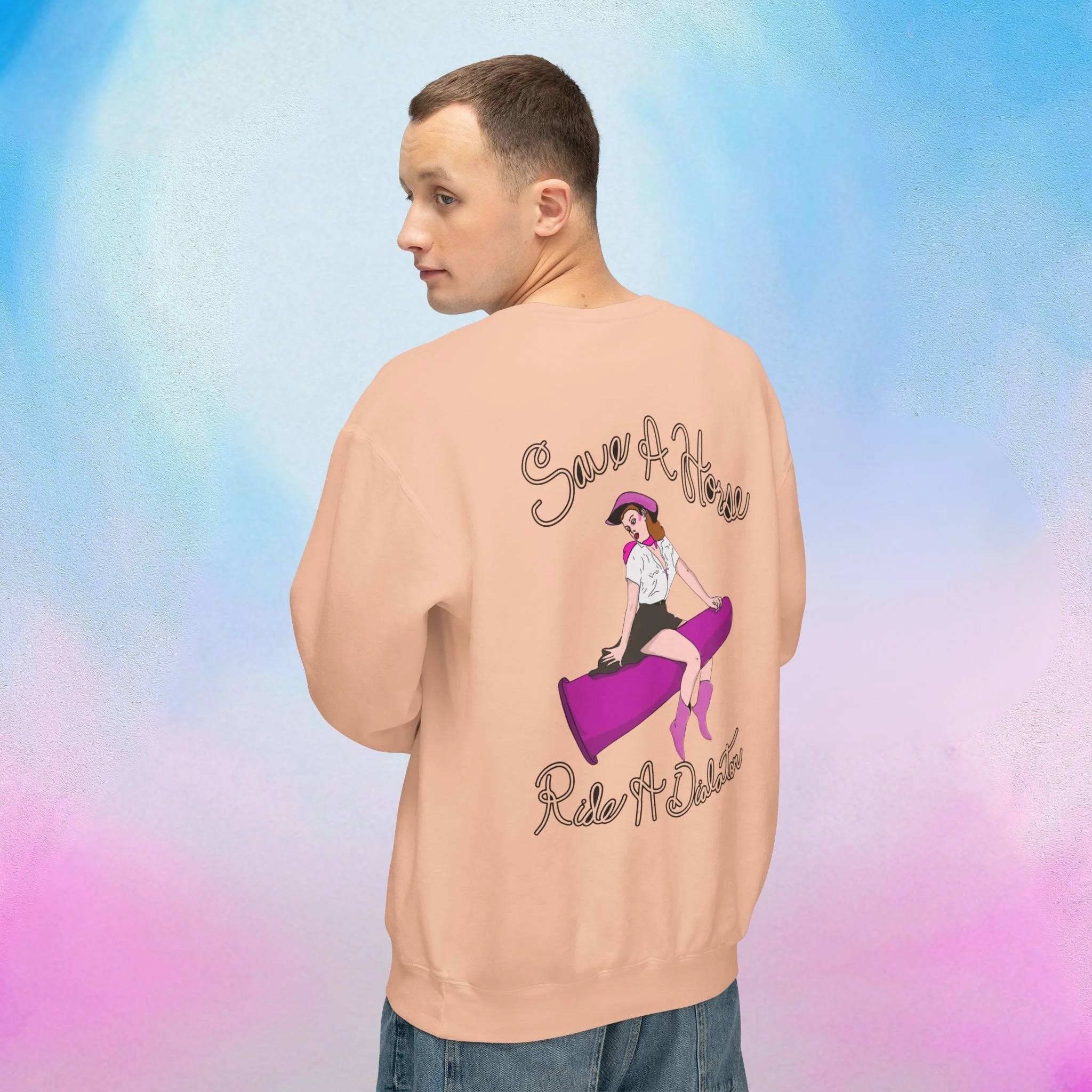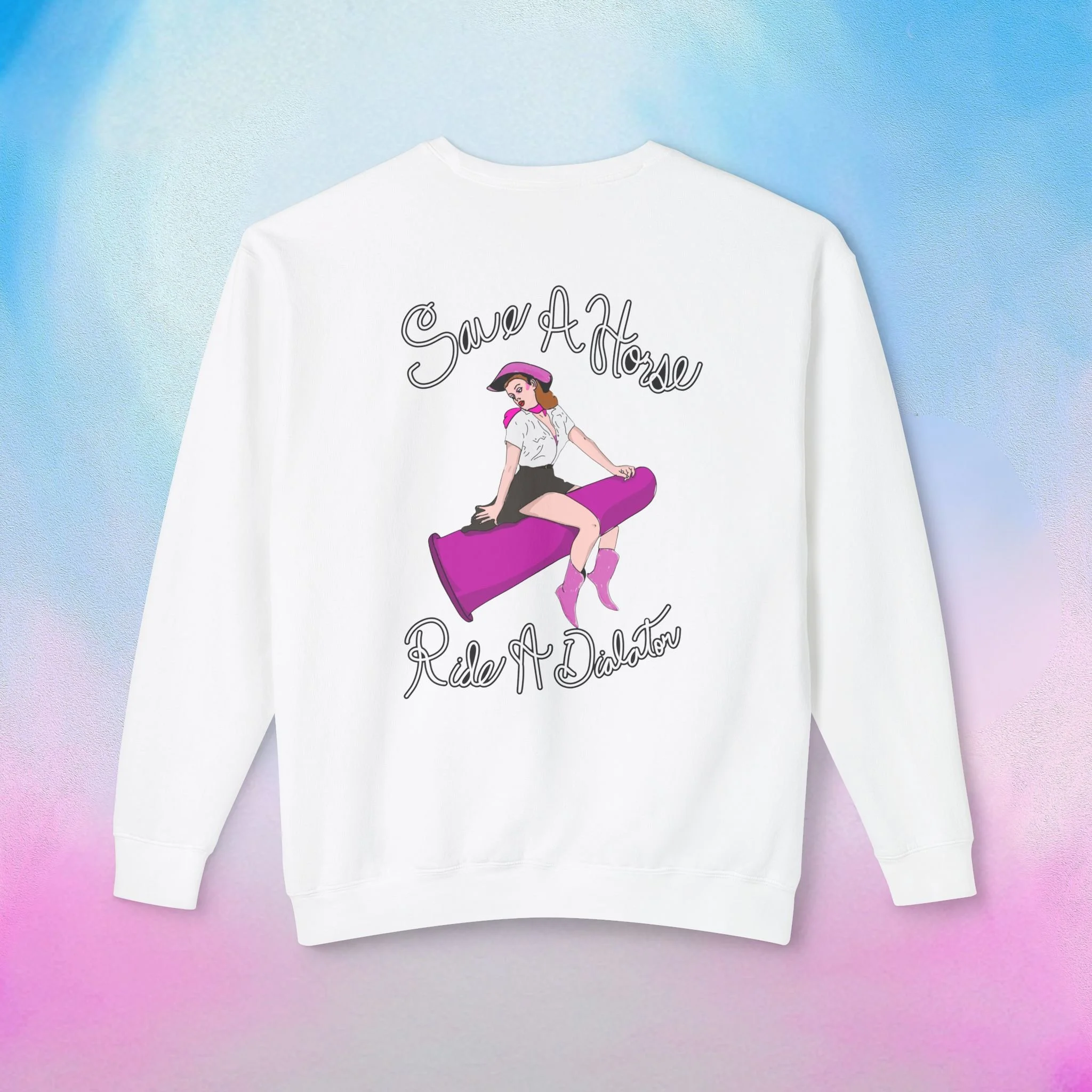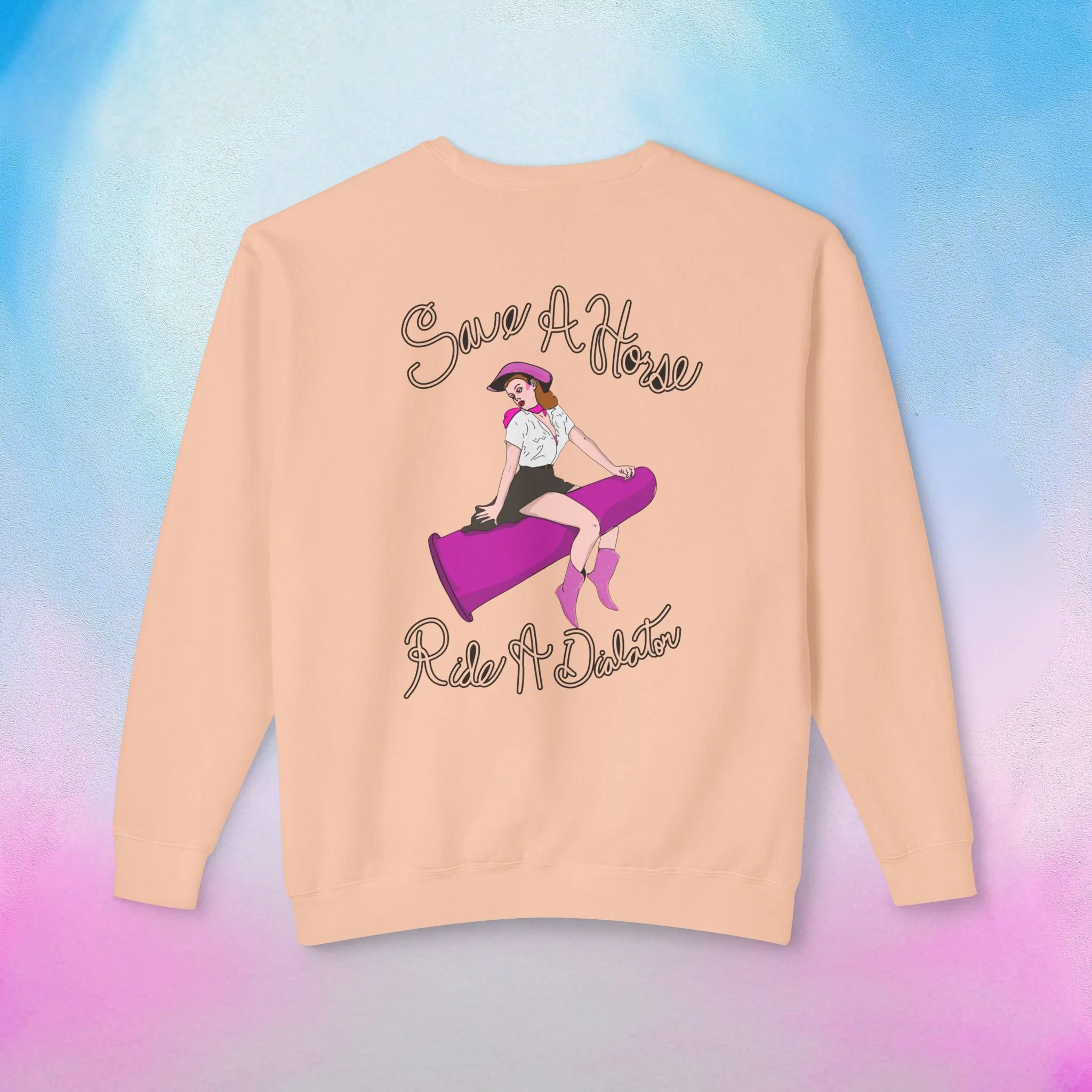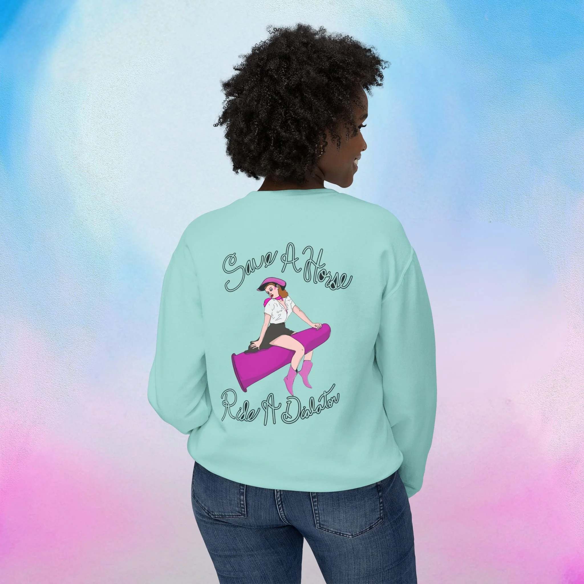 Lady Parts Comfort Colors "Save A Horse, Ride A Dilator" unisex crew sweater.